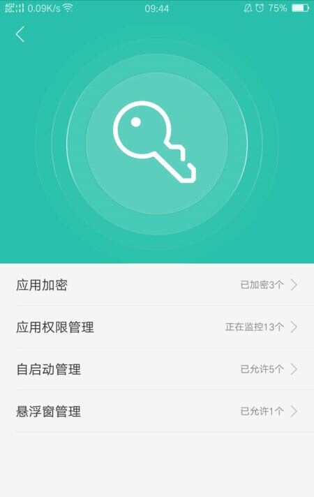 权限管理--应用加密,输入新密码,打开程序开关;关闭时,输入密码,关闭程序开关即可,由于涉及隐私,无法截图。