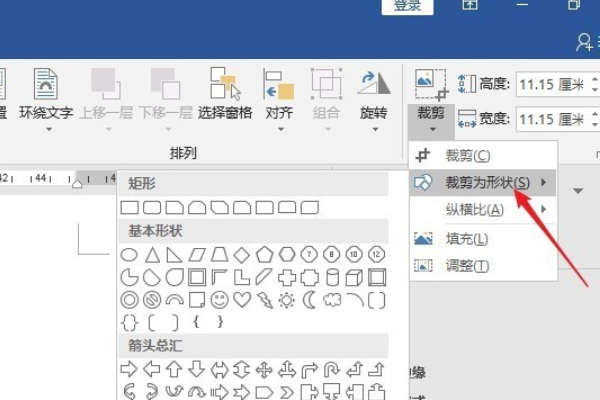 2、鼠标点击选中图片,点击“图片工具”点击“裁剪”点击“裁剪为形状”。