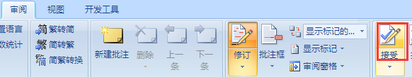 单击审阅----接受按钮即可,如图所示。