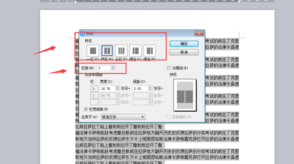 注:如果选取段落后分栏,则仅对所选段落进行分栏设置;如果分栏时未选取段落,则对全文进行分栏