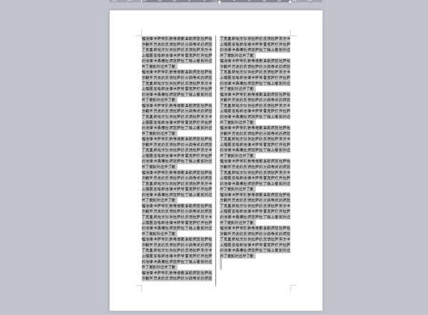 原因分析:这是因为用户在对文档的最后一段进行选定时,把段落标记也一同选上了,这样一来所选内容之后就没有任何内容和符号了。又因为文档的最后一页没有满页,Word把所选文档的最后一段连同以后页面的空白处全部当成了要“分栏排版”的内容,所选文字和页面的空白一同被分成了两栏,所以会出现最后一段的文字排版结束后实际只占一栏或两栏的情况,到底排版后会出现几栏文字,要看此页最后一段后的空白有多大。