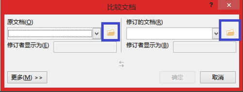 点击“比较文档的两个版本”后,会弹出一个“比较文档”的窗口,分别点击两个打开文件的图标,如下图所示,选择好要进行比较的两个文档;