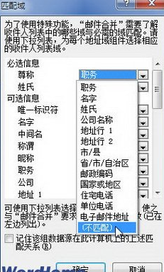 第四步,打开“匹配域”对话框,单击需要修改的项目下拉三角按钮,选择“不匹配”选项即可取消该项目在问候语中显示。完成设置连续单击“确定”按钮,“匹配域”对话框。