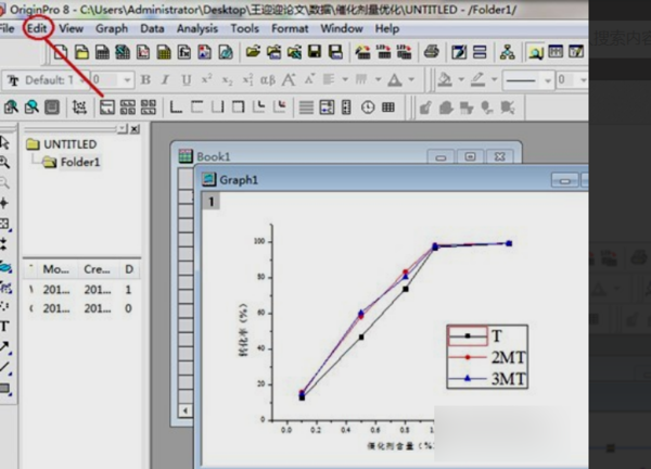 双击word文档中的图像,即可以打开origin软件并读取该图像的内容,可以在当中进行修改。最终达到要求。