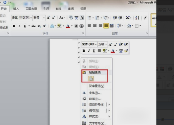4、在电脑上打开Word文档,在编辑区右击鼠标,在右键菜单中选择粘贴选项即可。