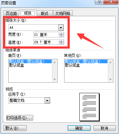 纸张:A4纸,宽度21厘米,高度29.7厘米。