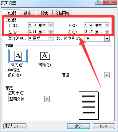 页边距:上下都是2.54厘米,左右都是3.17厘米。