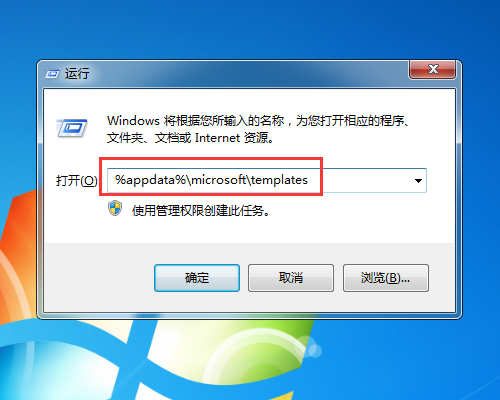 4、然后在命令窗口的输入框里面将“%appdata%\microsoft\templates”输入。