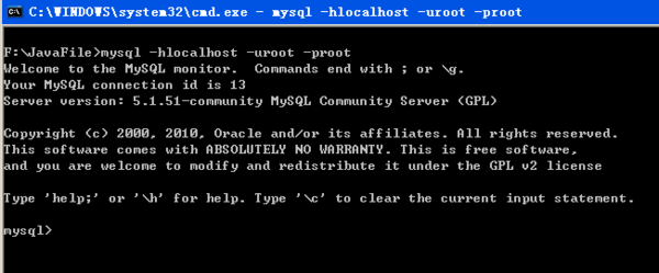 其中-h表示主机,-u表示用户,-p表示密码,登录成功会显示mysql>,如图: