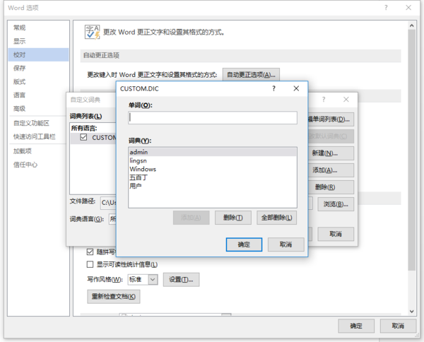 Word的自定义词典:标准词典中没有但作者又希望拼写检查能够作为正确单词接受的单词的列表。