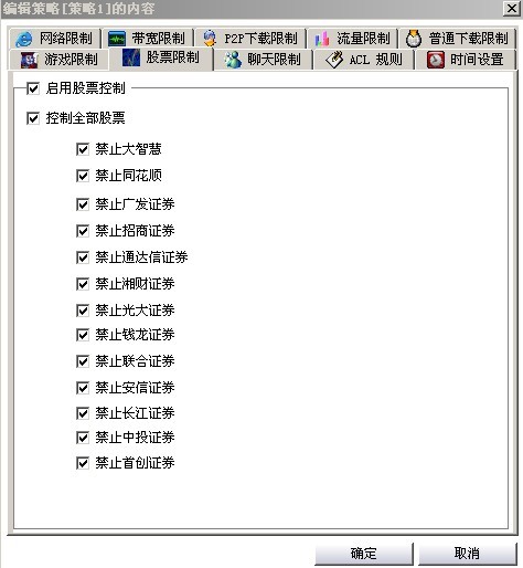 聚生网管目前集成了10多种当前最流行的股票软件控制规则,如大智慧(包括大智慧新一代)、同花顺、广发至强版、龙卷风行情分析软件、钱龙旗舰、国元证券软件、分析家、麒麟短信王、光大证券超强版、证券之星、国信证券、申银万国等等。同时,还可以根据客户的需要定制特定股票软件的控制规则。