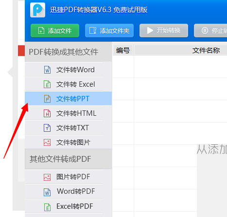 1.打开pdf格式转换工具,选择转换格式,这里单击“文件转ppt"就行了;