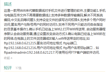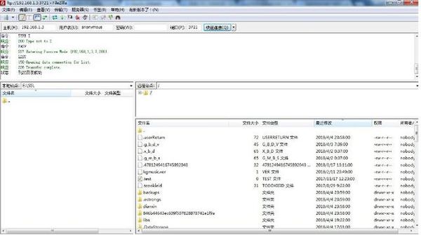 5、在电脑上下载安装FileZilla ftp客户端软件(别告诉我你不会安装^_^),打开后输入刚才记下来的主机IP地址和端口号,用户名和密码为空,然后点快速连接即可。连接成功后就可在软件右下方看到手机中的文件,在文件点右键出现管理菜单,就可以进行下载和删除等各种操作,而在左下方的是电脑本地文件,可以切换目录,选中文件进行上传;