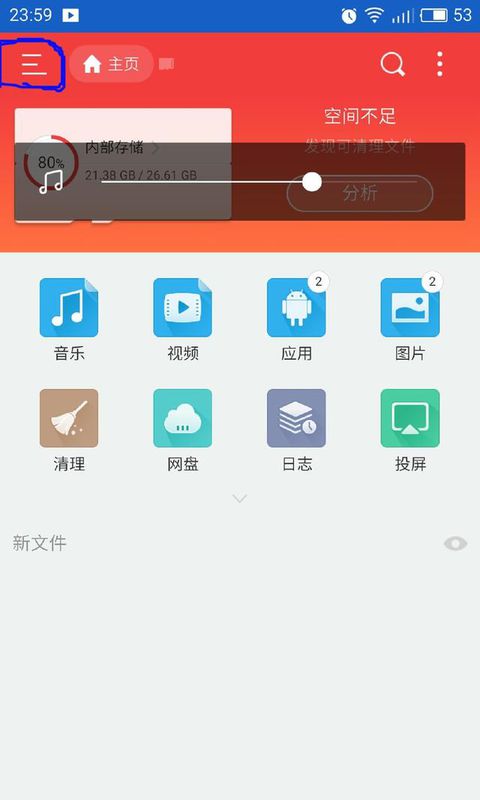 1、首先将手机连上wifi(和电脑在同一个局域网)。在手机下载安装APP“ES文件管理器“(其他文件管理器只要具有“远程管理器”功能的也可以),打开APP后点左上角的菜单;