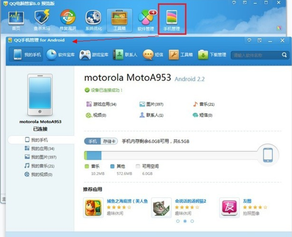 方法一:双击桌面图标“QQ手机管理for android”,进入QQ手机管理页面。
