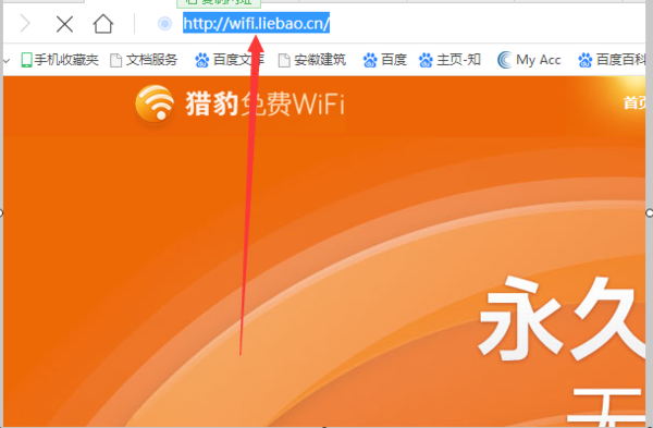 1、打开电脑上的浏览器,在浏览器的网址栏输入猎豹免费WiFi的官网网址,进入猎豹免费WiFi官网。