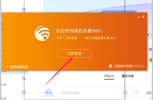 3、下载完成后点击打开猎豹免费WiFi的安装包,进行程序的安装,等待安装完成即可自动开启电脑的免费WiFi功能。