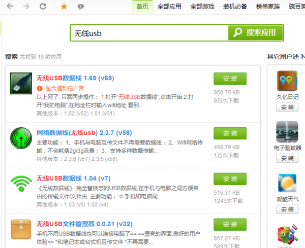这个很简单,如果你是安卓的手机的话,就更容易了,你在豌豆荚里下载一款软件,名叫“无线USB",这个软件就能很容易的帮你完成电脑与手机的连接,而且再也不需要没有带数据线的困扰了。 这个就不需要蓝牙,原理是建立一个小型的局域网而已,软件会教你怎么操作,