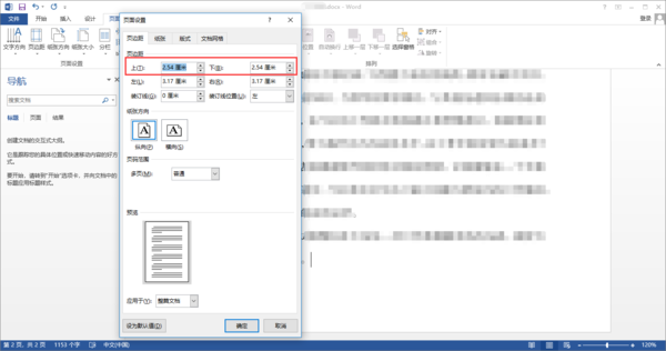 2、在页边距设置的距离页边距”上”边设置中,把默认的2.54厘米改成2厘米,当然还可以改成其他更小的数字,然后点击确定就可以了。