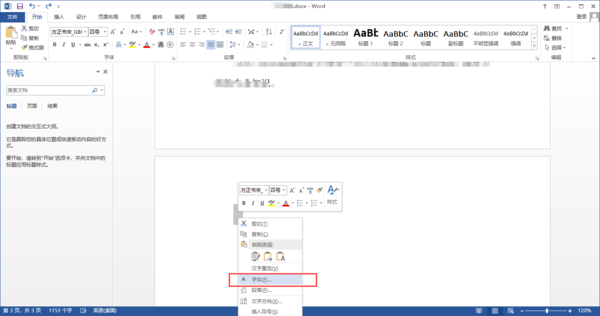 2、由于前页为表格、图片等形成的空白页:选中空白页回车符,右击,选择“字体”,设置字号为1(磅);