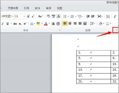 1、在开始菜单中,找到段落设置,点击段落文字右侧的一个向下的箭头符号。