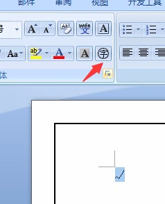 3、将对勾选中,在”开始“工具栏里,找到字体里的”带圈字符“,选择”□“ ,确定。