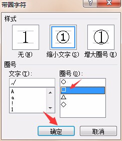 4、然后在圈号中选择正方形符号并按”确定“按钮,如图: