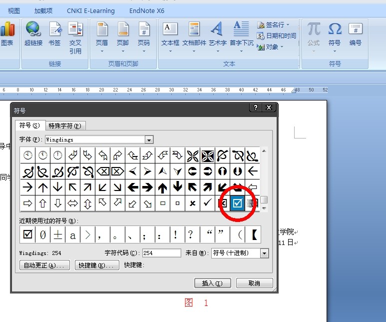 一种是在插入特殊符号:菜单→插入→符号/特殊符号,在字体右侧选择Wingdings2,选择带方框的勾(见图1);