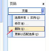 鼠标移到页眉后面的按钮,会出现一个三角按钮,点击会有下拉菜单,然后选择修改