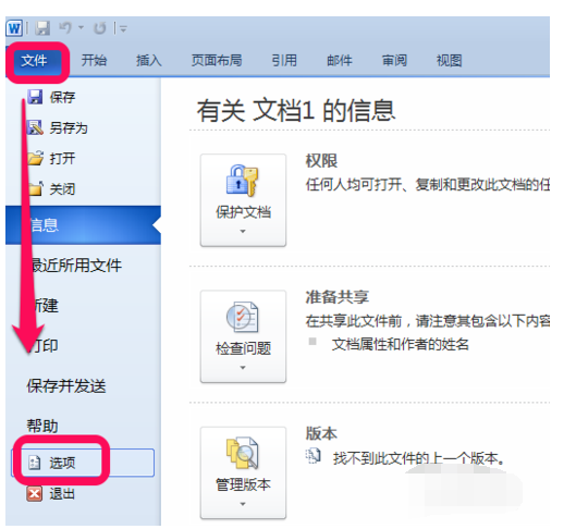 1、打开Word,设置把“开发工具”功能选项显示出来:点击【文件】—【选项】。