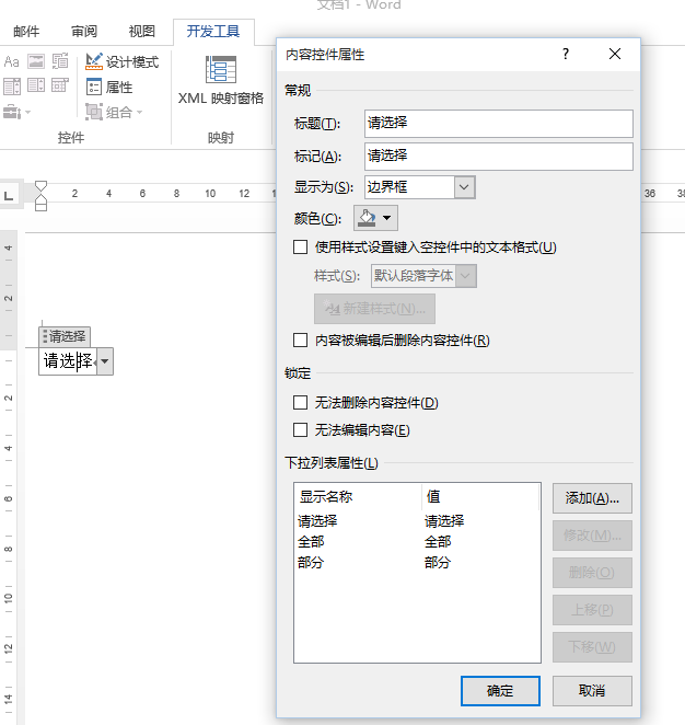 如何在WORD中设置下拉列表控件的列表值