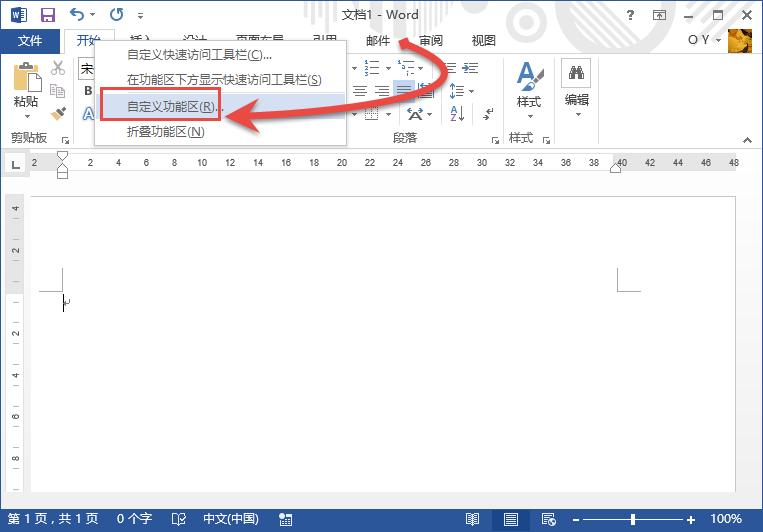 1、右击菜单栏或者功能区,选择点击自定义功能区。