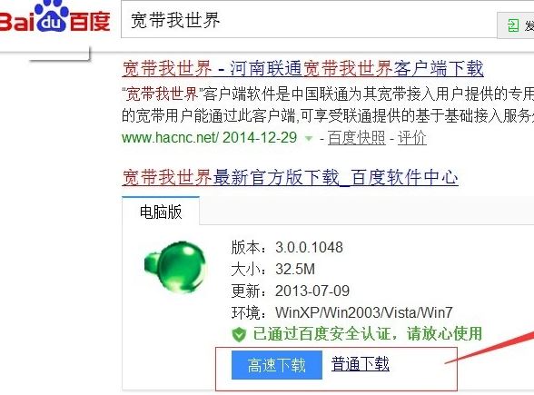 在其它能联网的电脑上,下载“宽带我世界”客户端软件。在百度上直接搜索“宽带我世界”,就可以下载了。