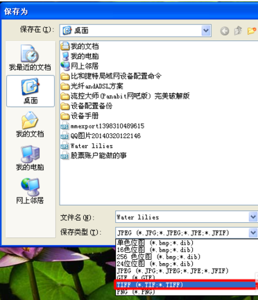 2.打开另存为窗口,选择保存路径,名称和保存类型,保存类型选择TIFF,另存完成。