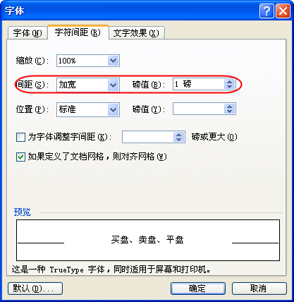 选中输入的字符,点右键,选择“字体”命令,在打开对话框中切换到“字符间距”选项卡,在“间距”栏中选择标准或者加宽,在右边调整到合适的值就可以了