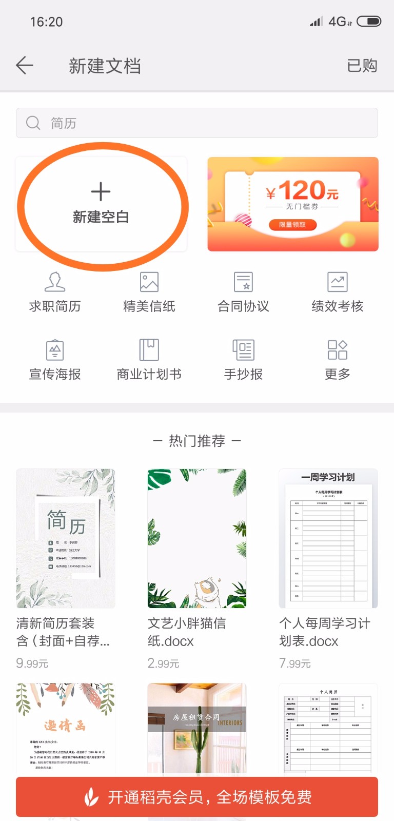 手机上可以用WPS office写word文件: