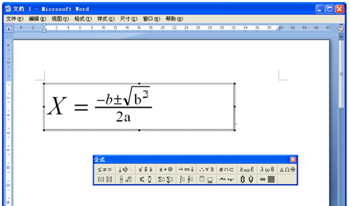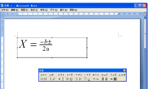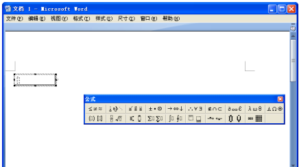 2、返回到Word文档窗口,并显示“公式”工具栏和用于输入公式的文本框,如图所示。
