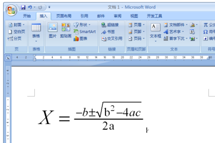7、按键盘上的→键,将光标移动到正常的水平位置,在公式编辑文本框中输入公式的剩余部分“-4ac”,单击文档中的空白位置,即可返回到文档的正常编辑状态,如图所示。