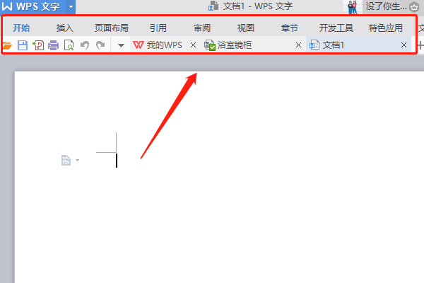 3、全部显示出来可以在文档的右上方这里,有一个向下箭头的小图标,就是由于这个小图标的箭头向下才导致隐藏了功能区。如下图所示: