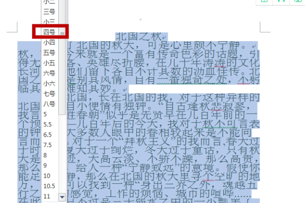 3、将字号设置成稍小点的,如图”四号“或者更小。