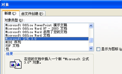 插入 对象 microsoft 公式 3.0