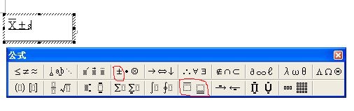点击我们刚才建立的“公式”工具条(显示的是“根号下a”),会出现一个类似文本框的输入区域,在此文本框中按杂志要求用键盘输入大写(X S)或者小写(x s),如果要求为斜体的就输入大写字符。然后,选中X,在出现的公式工具条中找到“x跋的跋”点击即可,再点击上“加减号”就OK了。