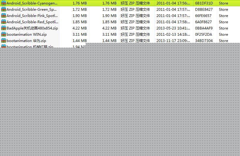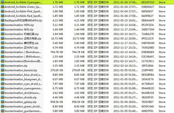 至于图片那里来嘛,当然是自己网上找啦,也可以下载别人的bootanimation,然后修改一下。最后就是压缩包了,把需要用到的part文件夹跟decs.txt打包成zip格式,必须是zip,不能是rar,而且打包的时候压缩方式要选择“存储”模式。然后改名成为bootanimation.zip,复制到SD卡里,再通过RE文件管理器复制到system\media\下面,重启。