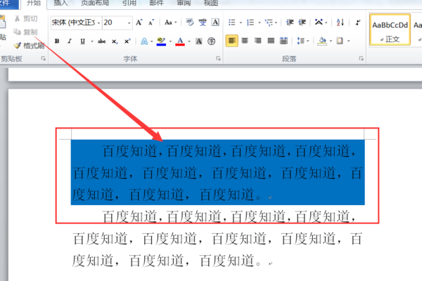 1、打开需要设置的相关word文档,选中需要添加蓝色底纹的段落,在“开始”选项卡