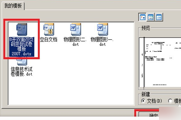 4、出现“我的模板”,系统给出了四种模板形式,单击一下第一个密封试卷模板,再单击确定。