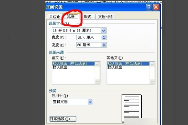 8、然后再点击最上面的选项“纸张”,点开“纸张大小”,选择“8开”或者“B4”即可。