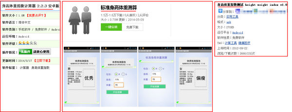 关于测量身高和体重的安卓软件,搜到三款,详见下图: