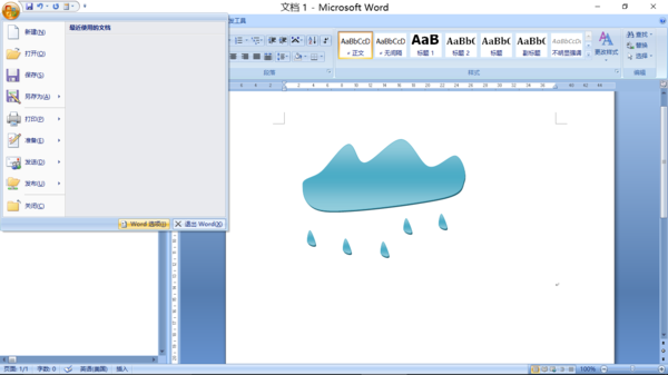 WORD2007版已经没有"文件"选项卡了,取而代之的是图形按钮。