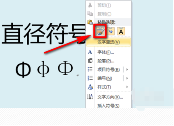 在网上搜索一个直径符号,然后对其复制,再粘贴到文档中相应的位置。