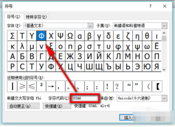 3、也可以在WORD中输入03A6,之后按Alt+X也可打出 Φ 。